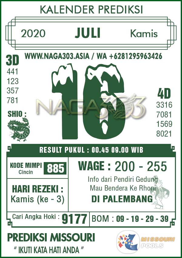Prediksi Missouri Pools Kamis 16 Juli 2020 | Web Toto Naga303