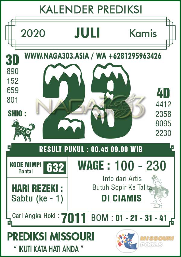 Prediksi Missouri Pools Kamis 23 Juli 2020 | Web Toto Naga303
