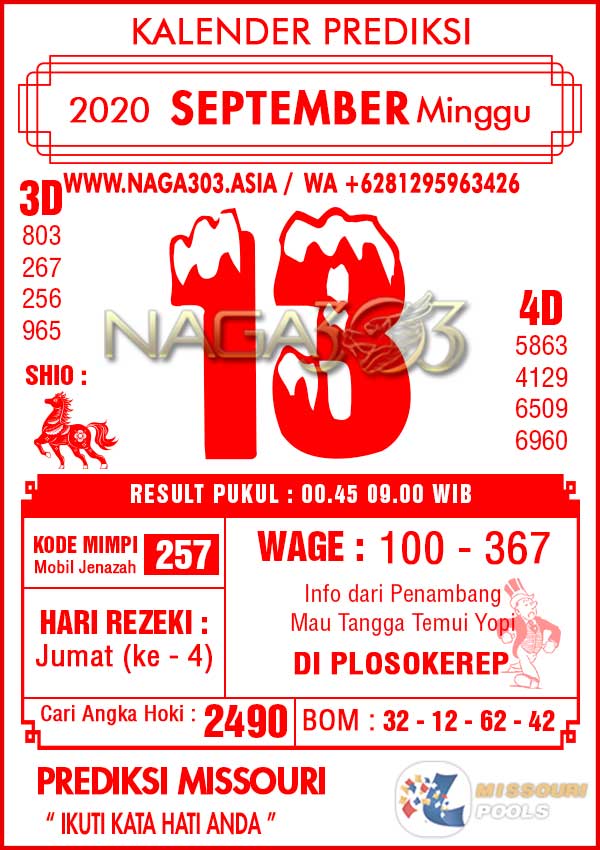 Prediksi Missouri Pools Minggu 13 September 2020 | Web Toto Naga303