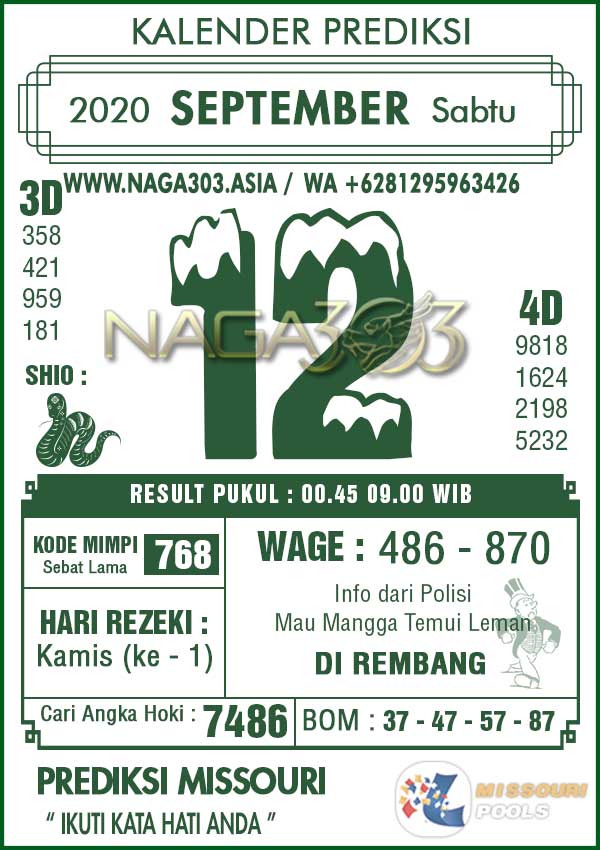 Prediksi Missouri Pools Minggu 13 September 2020 | Web Toto Naga303