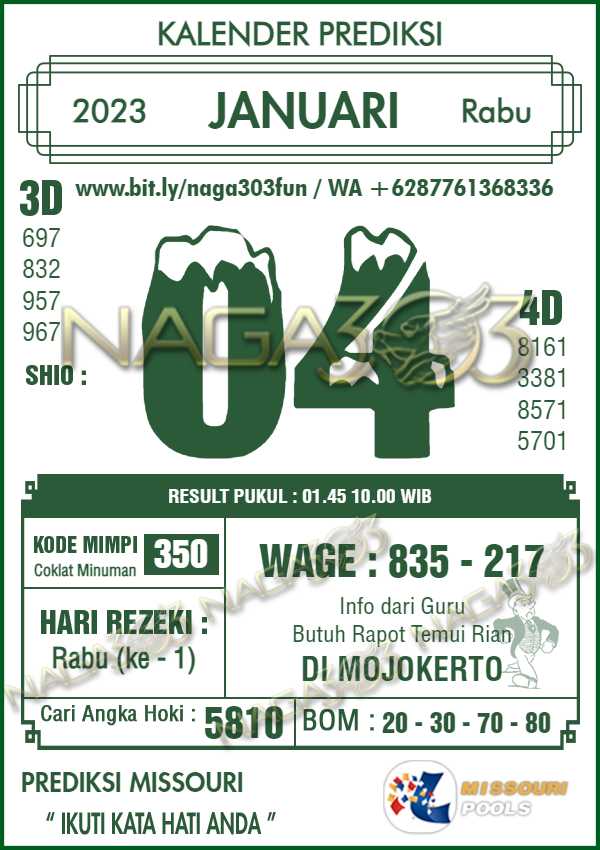Prediksi Missouri Pools Rabu 04 Januari 2023 | Web Toto Naga303