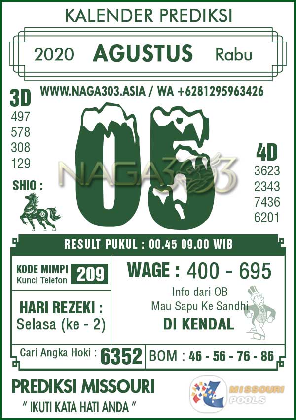 Prediksi Missouri Pools Rabu 05 Agustus 2020 | Web Toto Naga303
