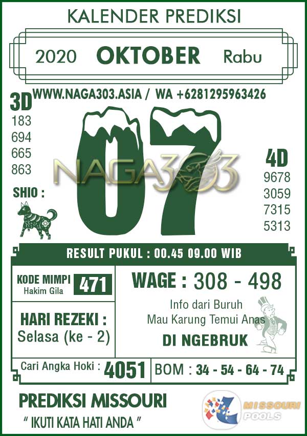 Prediksi Missouri Pools Rabu 07 Oktober 2020 | Web Toto Naga303