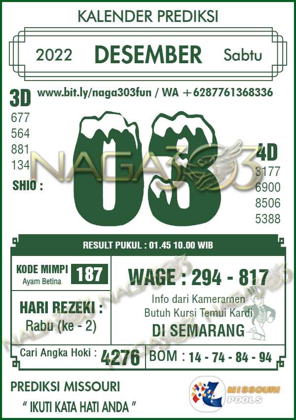 untuk informasi mengenai Prediksi MISSOURI POOLS, ini lah yang tadi kami bahas semoga bermanfaat prediksinya dan semoga anda beruntung. Salam Hokky…