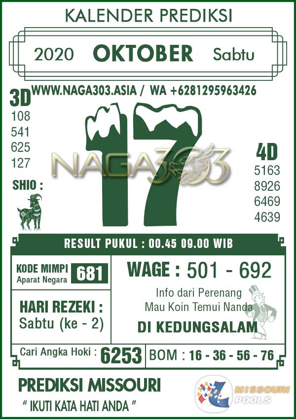 Prediksi Missouri Pools Sabtu 17 Oktober 2020