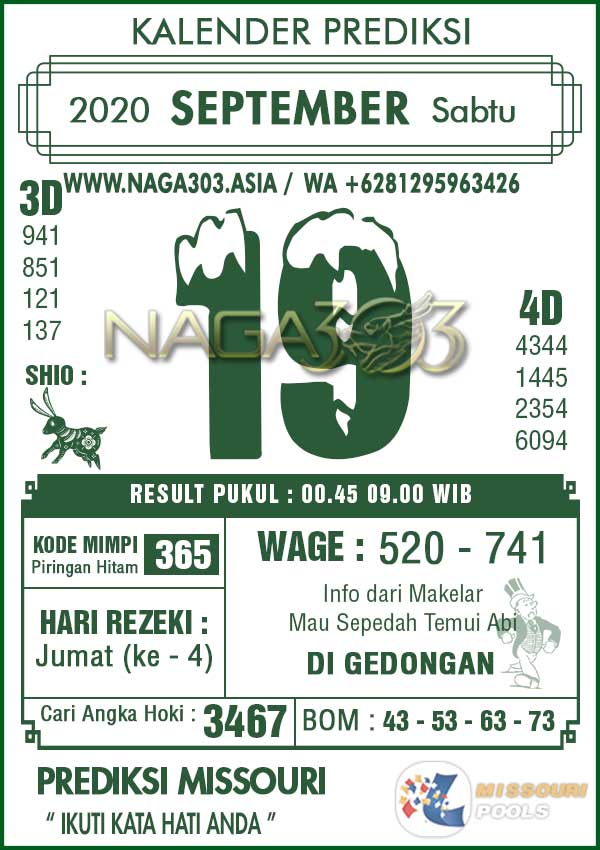 Agen Judi Online Terbesar & Terpercaya, Kami biasa memberikan info yaitu Prediksi MISSOURI POOLS, dimana prediksi ini telah kami racik terlebih