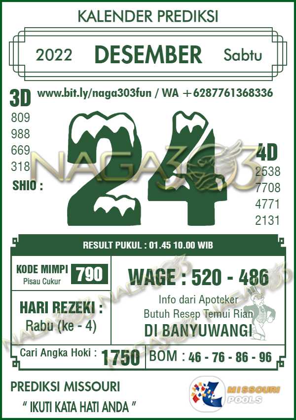 Prediksi Missouri Pools Sabtu 24 Desember 2022