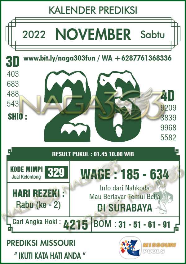 Prediksi Missouri Pools Sabtu 26 November 2022