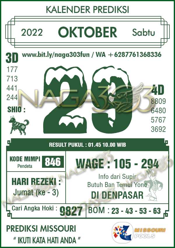Prediksi Missouri Pools Sabtu 29 Oktober 2022 | Web Toto Naga303