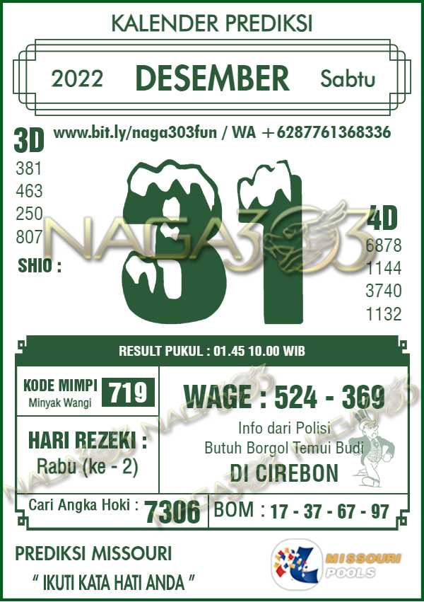 Prediksi Missouri Pools Sabtu 31 Desember 2022