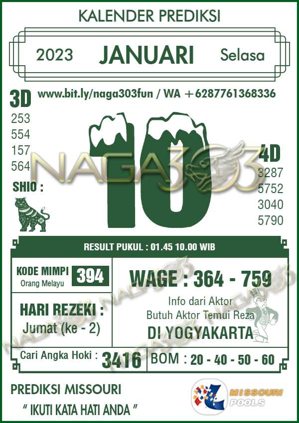 Prediksi Missouri Pools Selasa 10 Januari 2023