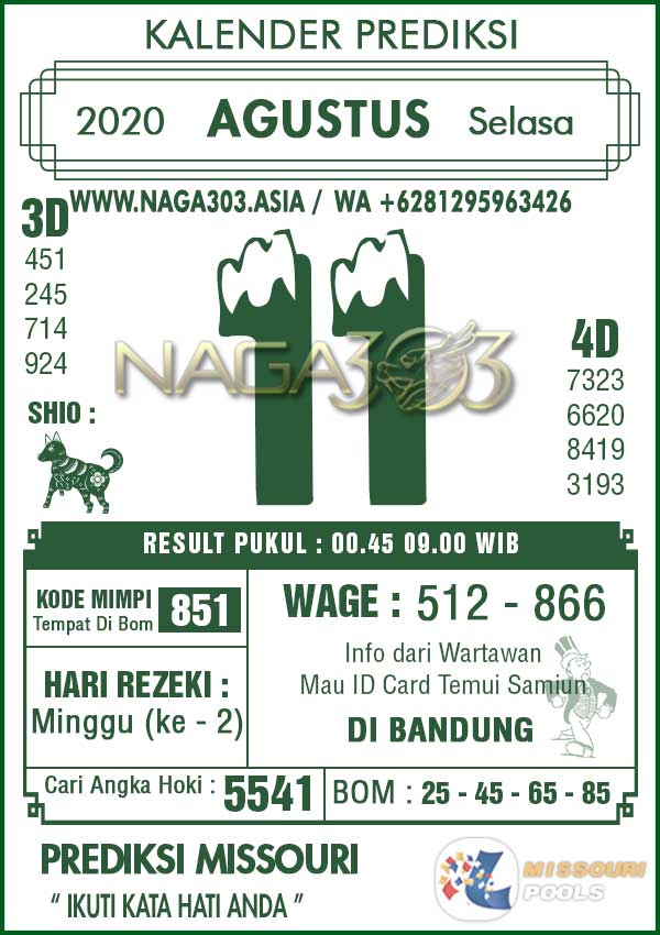 Prediksi Missouri Pools Selasa 11 Agustus 2020 | Web Toto Naga303