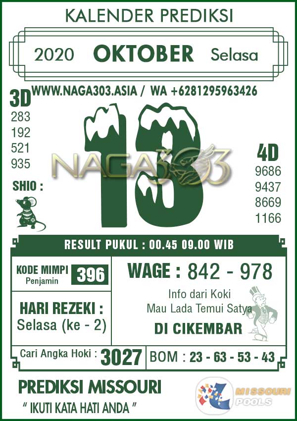 Prediksi Missouri Pools Selasa 13 Oktober 2020 | Web Toto Naga303