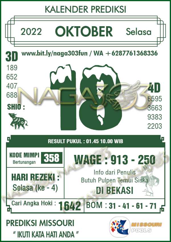 Prediksi Missouri Pools Selasa 18 Oktober 2022 | Web Toto Naga303