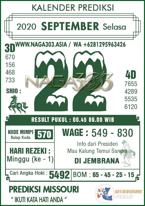 Prediksi Missouri Pools Selasa 22 September 2020 | Web Toto Naga303