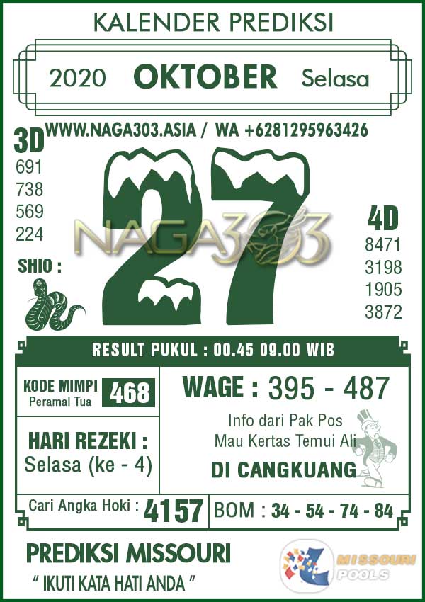Prediksi Missouri Pools Selasa 27 Oktober 2020