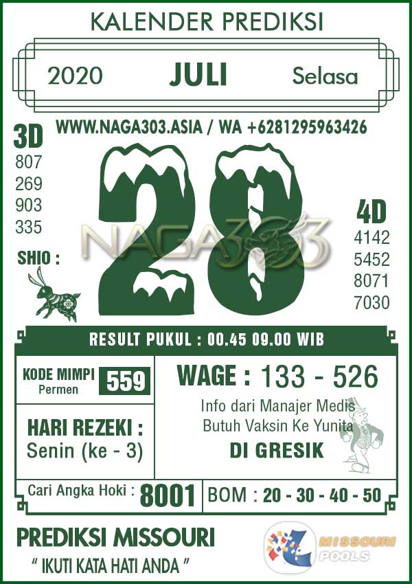 Prediksi Missouri Pools Selasa 28 Juli 2020 | Web Toto Naga303