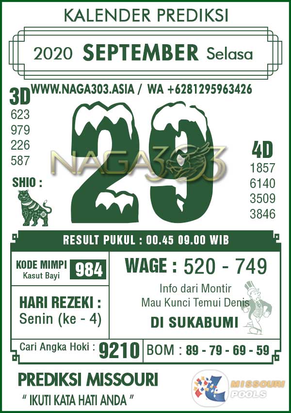 Prediksi Missouri Pools Selasa 29 September 2020