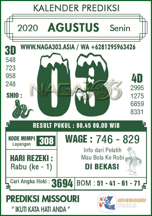 Prediksi Missouri Pools Senin 03 Agustus 2020