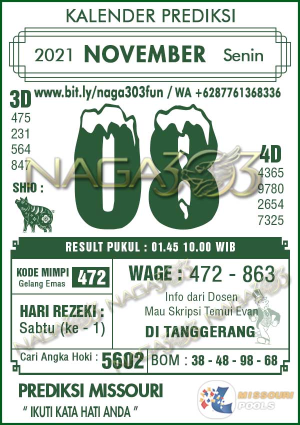 Prediksi Missouri Pools Senin 08 November 2021 | Web Toto Naga303