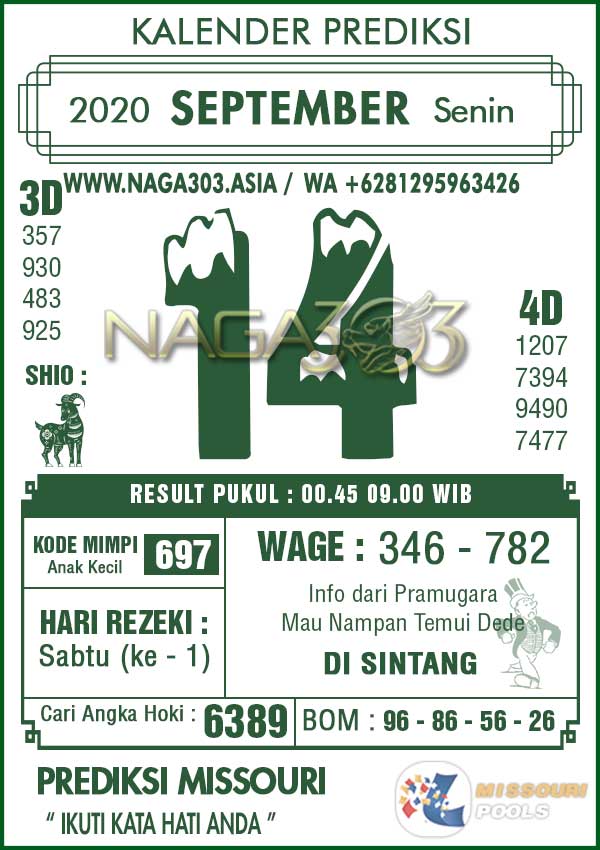 Prediksi Missouri Pools Senin 14 September 2020 | Web Toto Naga303