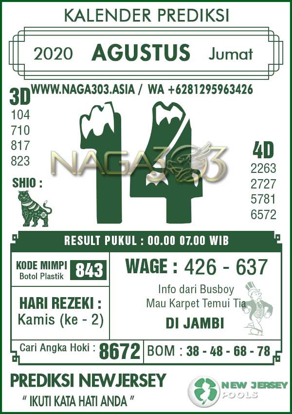 Prediksi Newjersey Pools Jumat 14 Agustus 2020