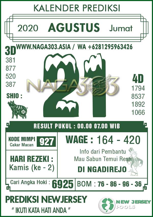 Prediksi Newjersey Pools Jumat 21 Agustus 2020