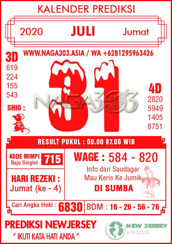 Prediksi Newjersey Pools Jumat 31 Juli 2020