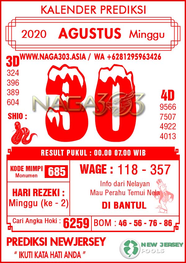 Prediksi Newjersey Pools Minggu 30 Agustus 2020 | Web Toto Naga303