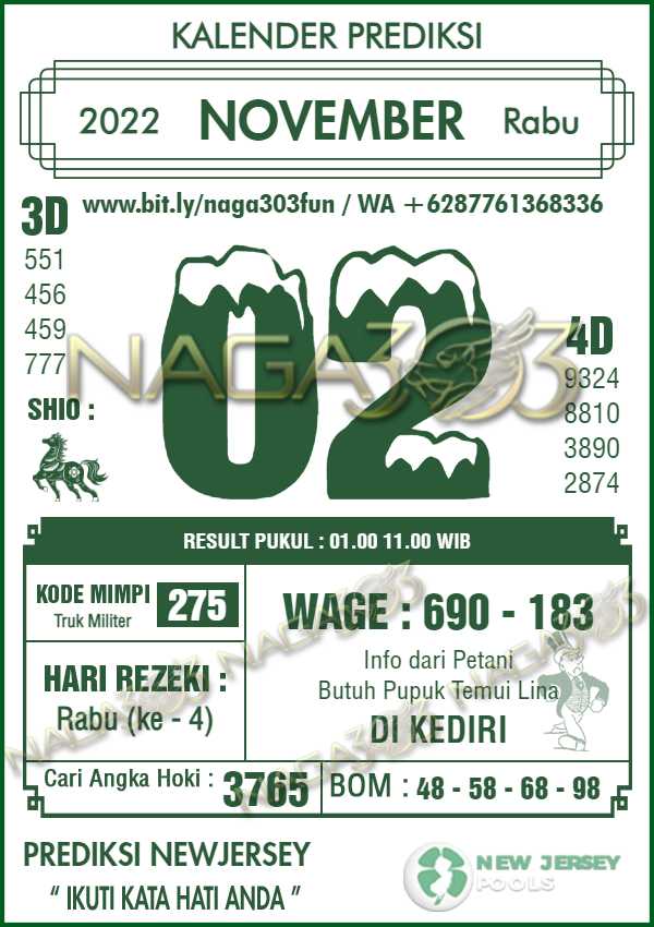 Prediksi Newjersey Pools Rabu 02 November 2022