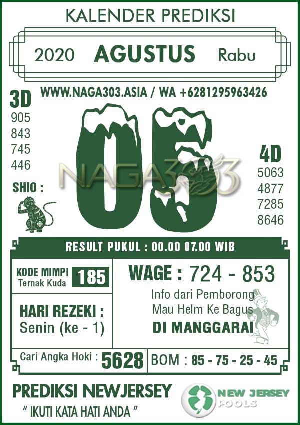 Prediksi Newjersey Pools Rabu 05 Agustus 2020