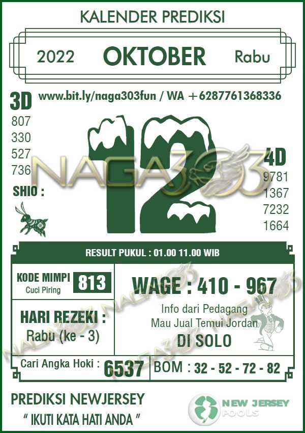 Prediksi Newjersey Pools Rabu 12 Oktober 2022