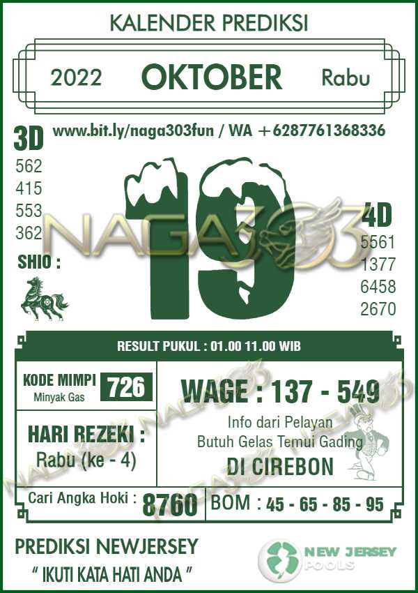 Prediksi Newjersey Pools Rabu 19 Oktober 2022