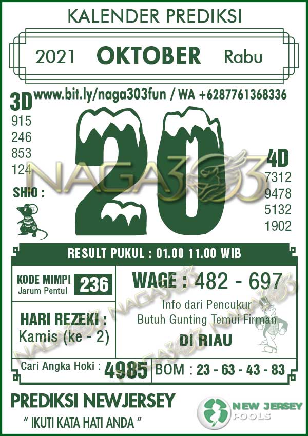 Prediksi Newjersey Pools Rabu 20 Oktober 2021