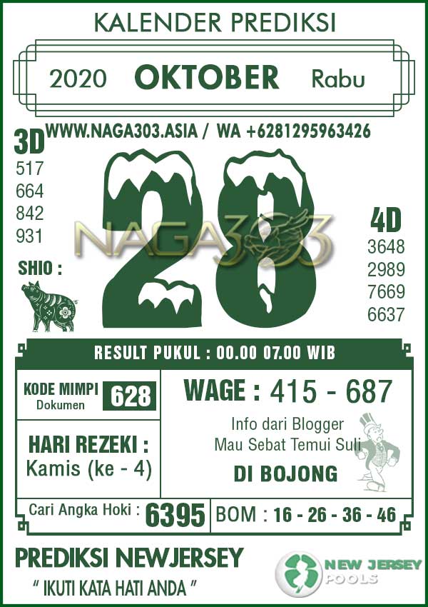 Prediksi Newjersey Pools Rabu 28 Oktober 2020 | Web Toto Naga303