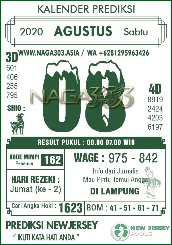 Prediksi Newjersey Pools Sabtu 08 Agustus 2020 | Web Toto Naga303
