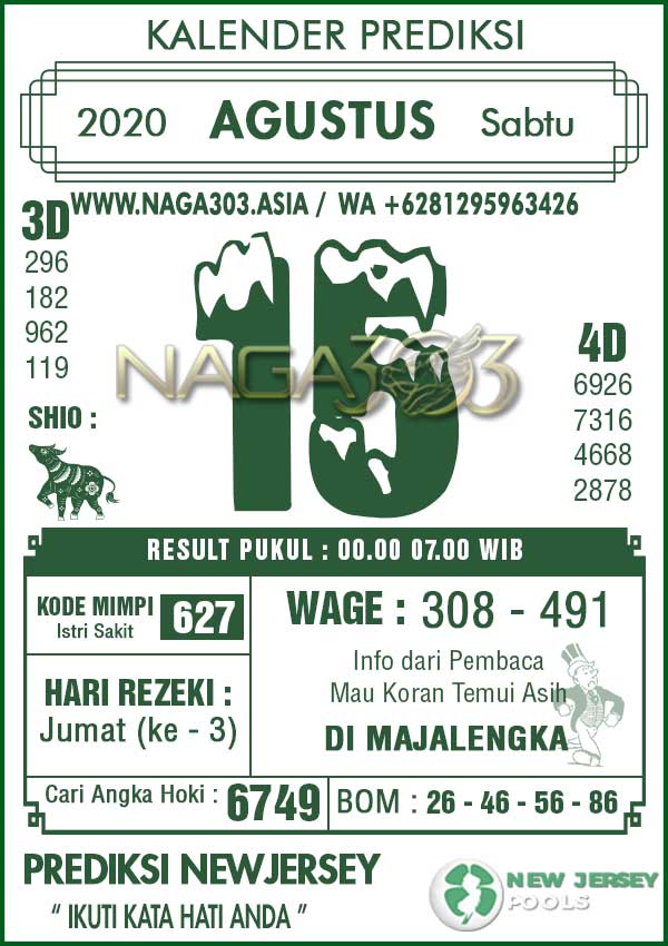 Prediksi Newjersey Pools Sabtu 15 Agustus 2020