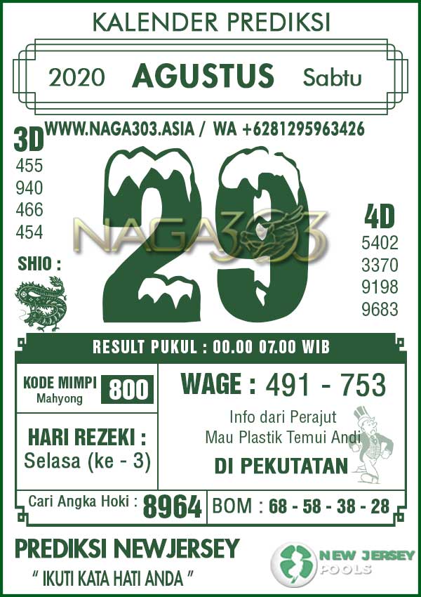 Prediksi Newjersey Pools Sabtu 29 Agustus 2020 | Web Toto Naga303