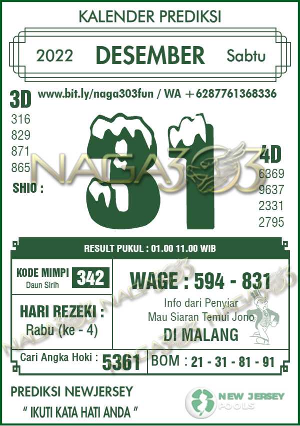 Prediksi Newjersey Pools Sabtu 31 Desember 2022