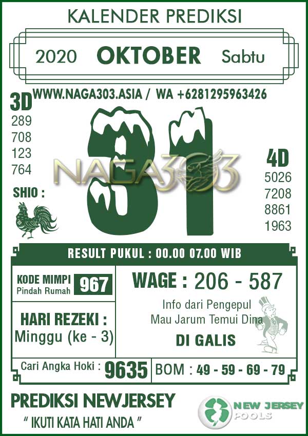 Prediksi Newjersey Pools Sabtu 31 Oktober 2020