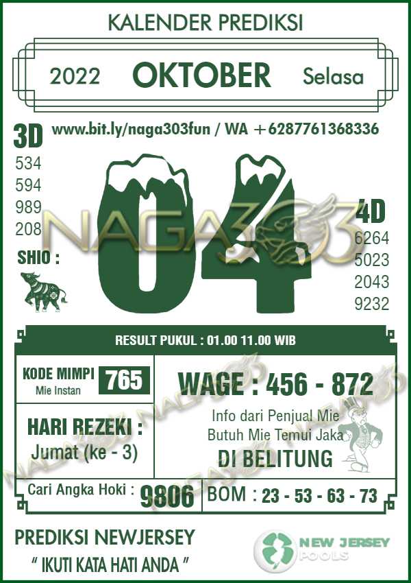 Prediksi Newjersey Pools Selasa 04 Oktober 2022