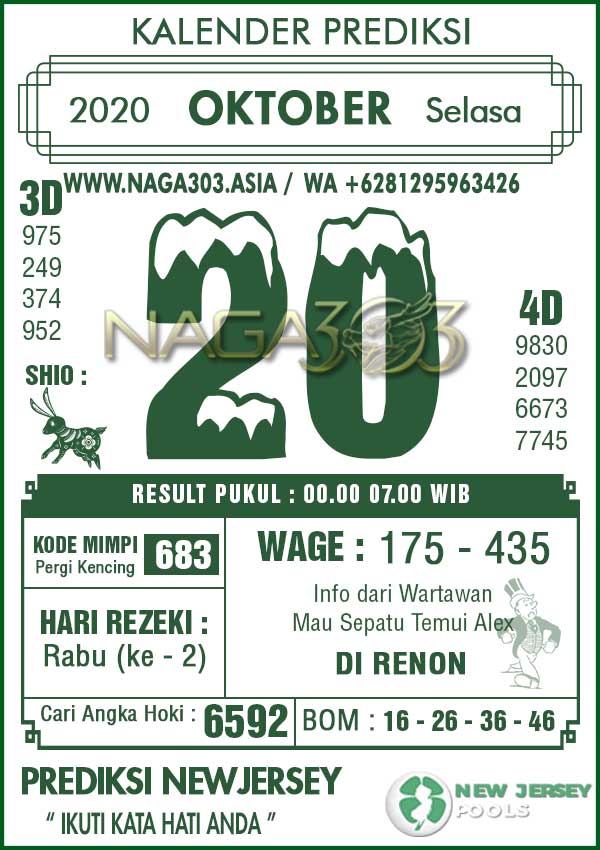 Prediksi Newjersey Pools Selasa 20 Oktober 2020 | Web Toto Naga303