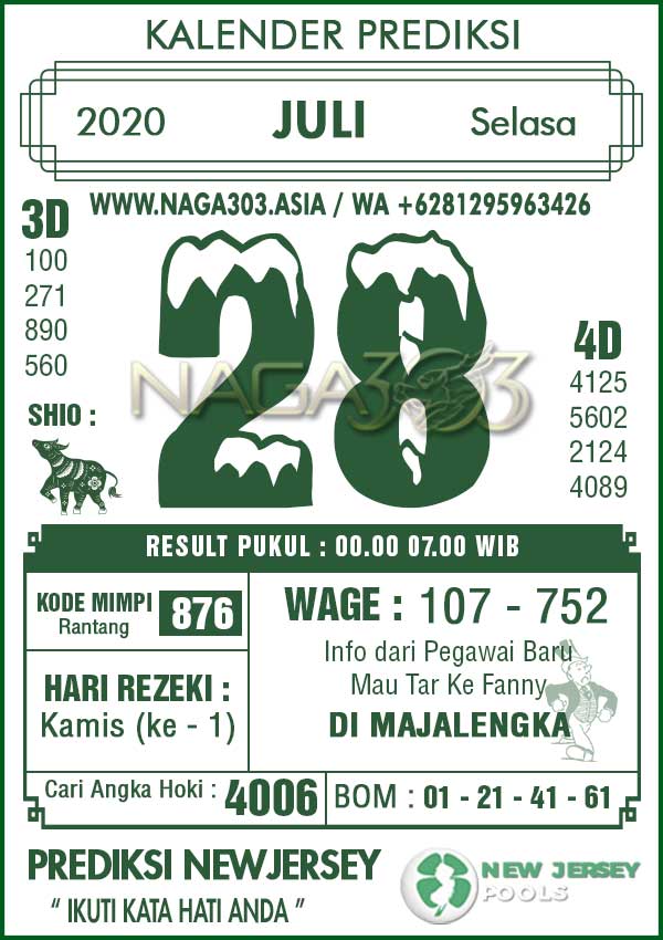 Prediksi Newjersey Pools Selasa 28 Juli 2020