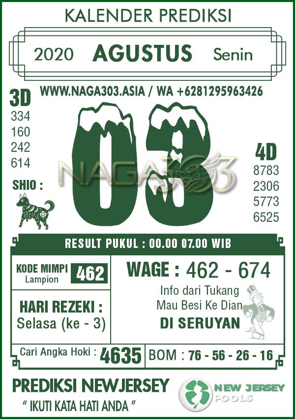 Prediksi Newjersey Pools Senin 03 Agustus 2020