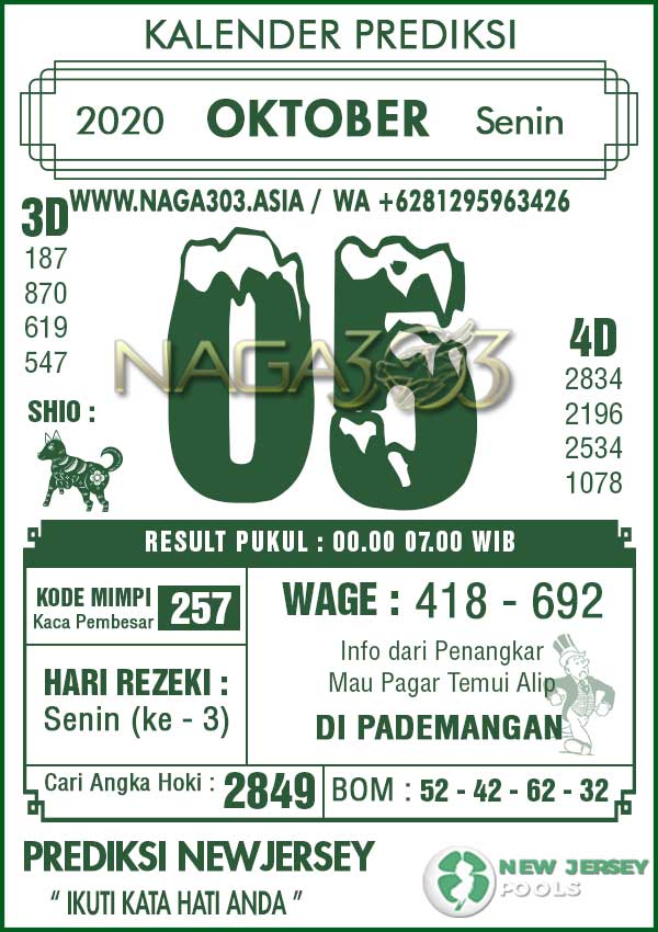 Prediksi Newjersey Pools Senin 05 Oktober 2020 | Web Toto Naga303