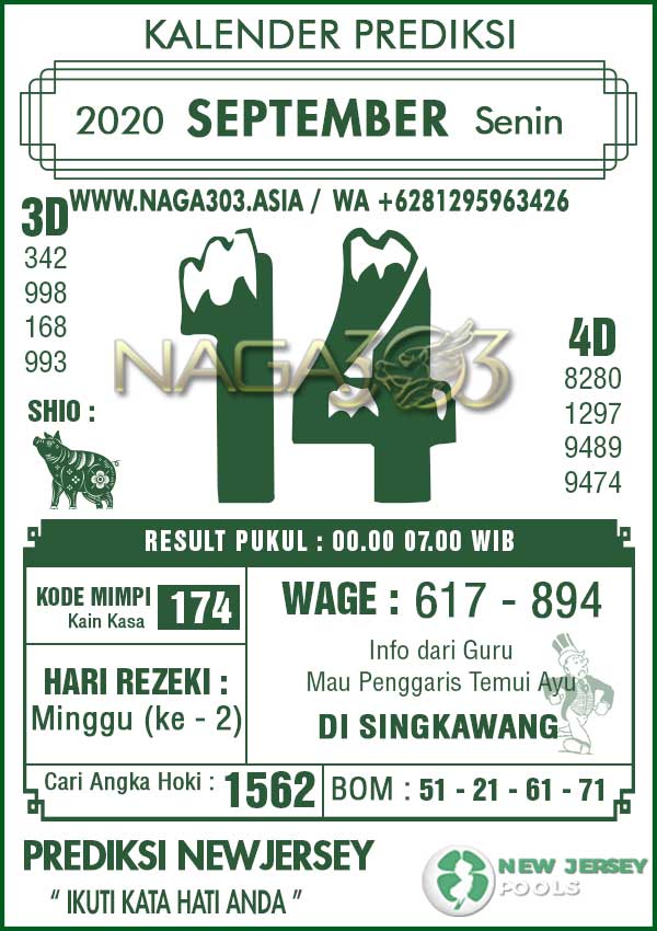 Prediksi Newjersey Pools Senin 14 September 2020