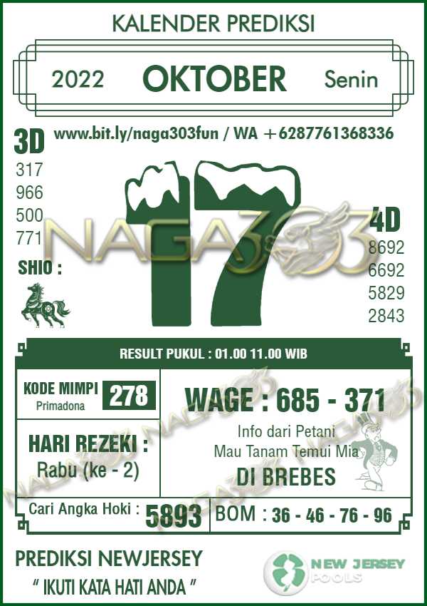 Prediksi Newjersey Pools Senin 17 Oktober 2022