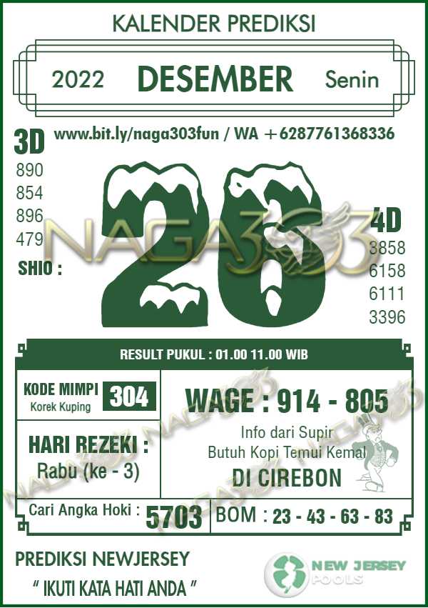 Prediksi Newjersey Pools Senin 26 Desember 2022