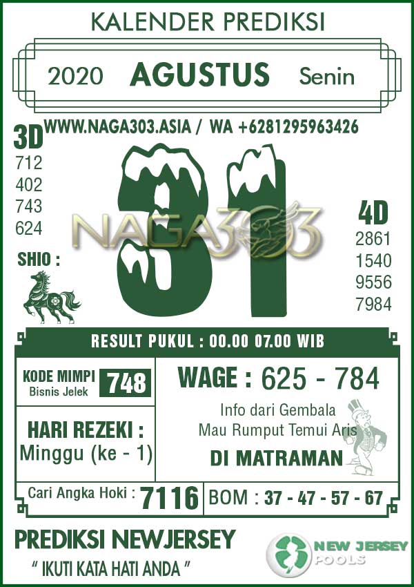Prediksi Newjersey Pools Senin 31 Agustus 2020
