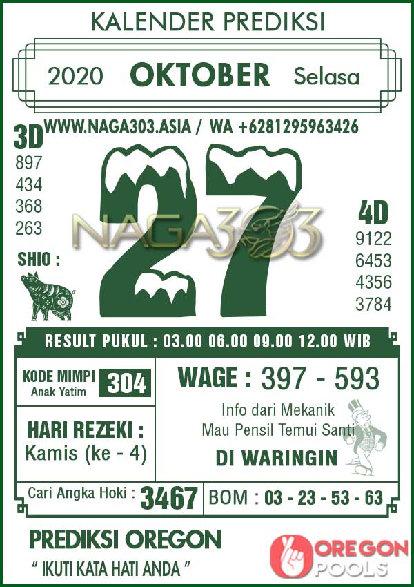Prediksi Oregon Pool Selasa 27 Oktober 2020 | Web Toto Naga303